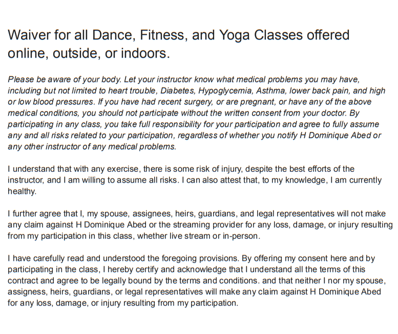 By registering for this workshop, you agree to Dominique's waiver below.